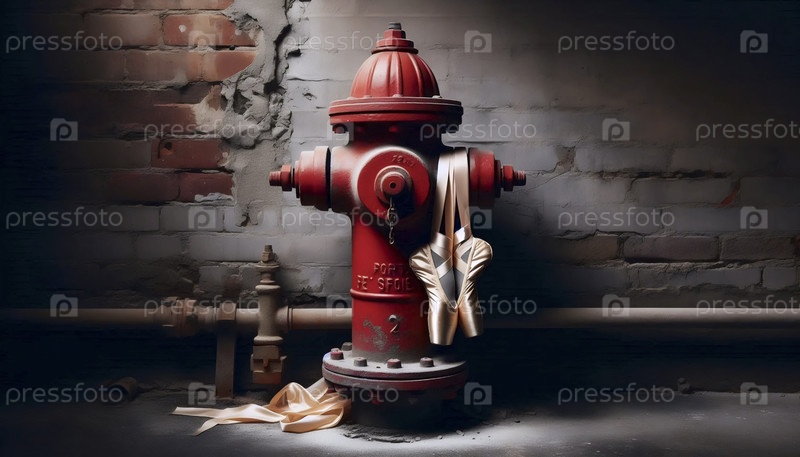 Обувь Pointe висит на пожарном гидранте за кулисами, Ai generated image