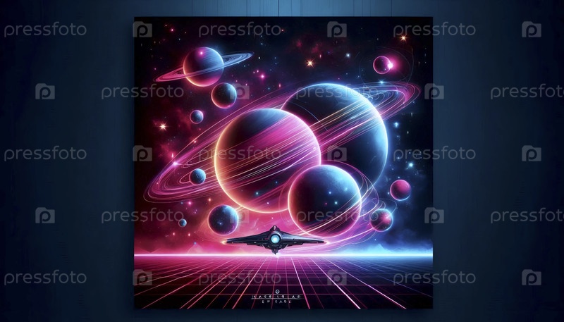Цифровой неоновый космический художественный плакат, Ai generated image