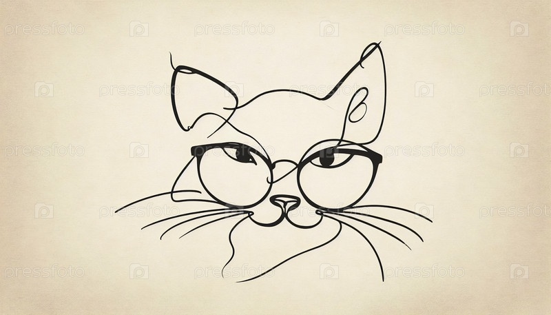 Минималистское линейное искусство кошки с очками, Ai generated image