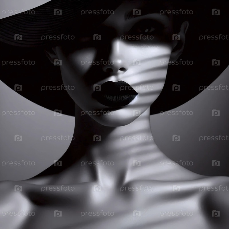 Драматические черные губы портретное искусство, Ai generated image