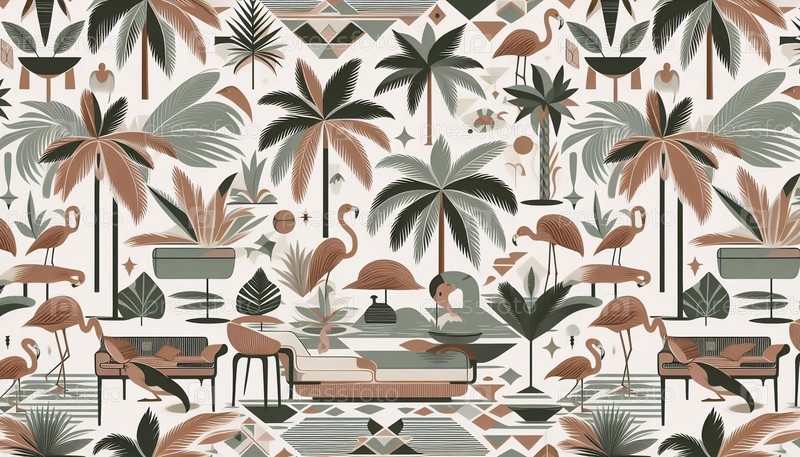 Ретро Palm Toile шаблон бесшовный дизайн, Ai generated image