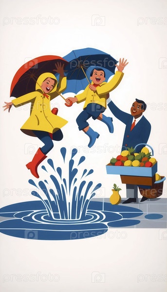 Иллюстрация детей, прыгающих в пруд, Ai generated image