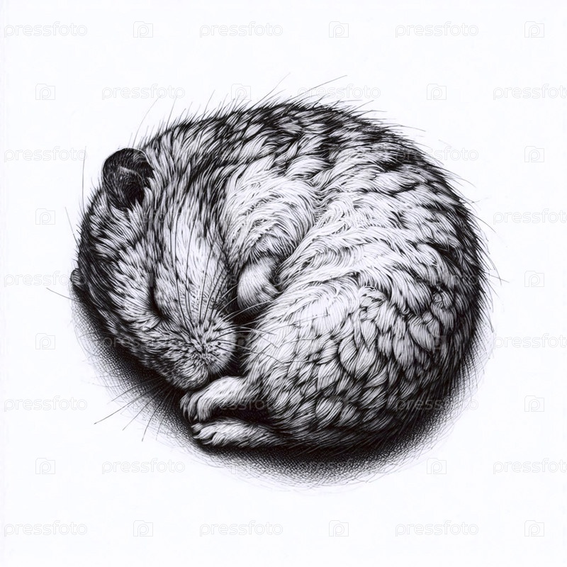 Спящий хомяк чернила рисунок A sleeping hamster ink drawing art print, Ai generated image