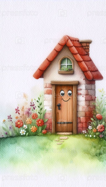 Дружеский дом акварельный арт-принт, Ai generated image A