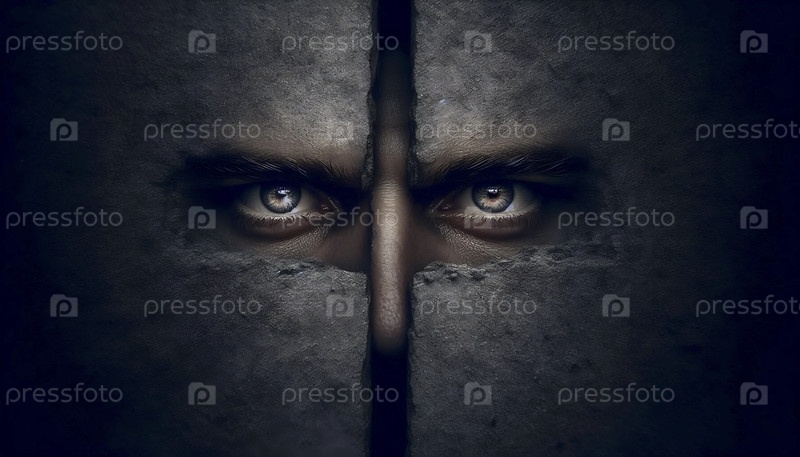 Глаза, заглядывающие через узкую щель в стене, Ai generated image