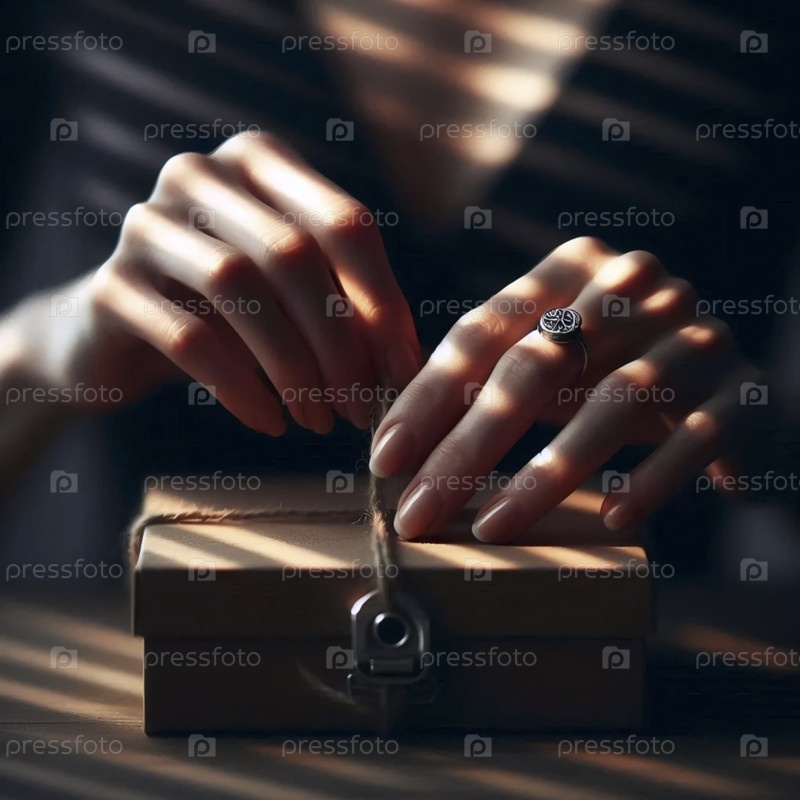Напряженные руки и сцена с коробкой денег, Ай создал изображение