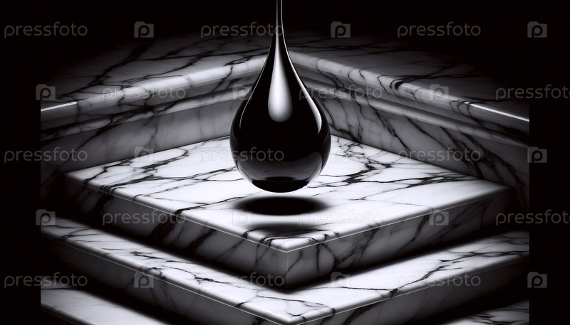 Черно-белый макрос падающей капли, Ai создал изображение