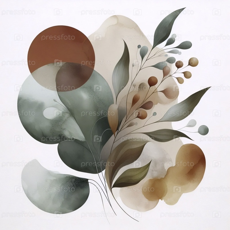 Бохо ботанический настенный принт с абстрактным акварелем, Ai generated image
