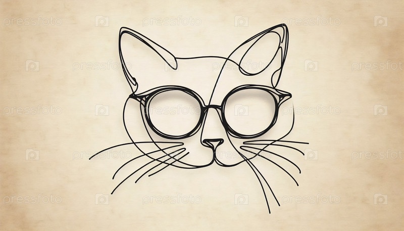 Минималистское линейное искусство кошки с очками, Ai generated image