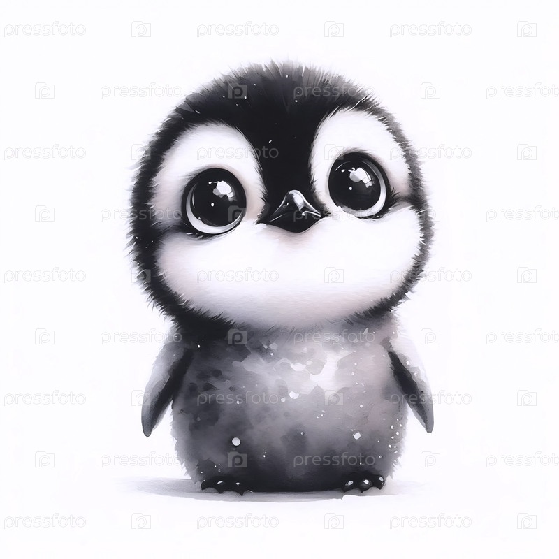 A Pleading Penguin акварельный художественный печат, Ai generated image