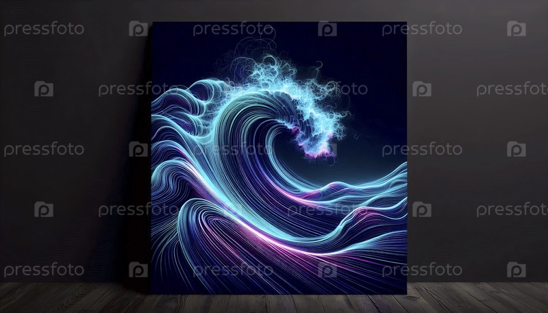 Цифровые неоновые волны художественный плакат, Ai generated image