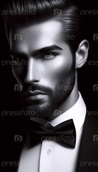 Профильный портрет с шелковым галстуком и бородой, Ai generated image