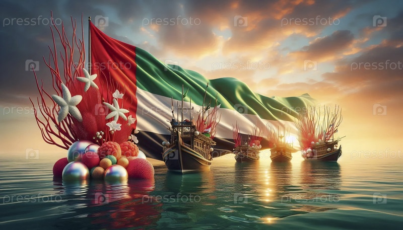 Флаг ОАЭ в наследии жемчужного дайвинга, Ai generated image