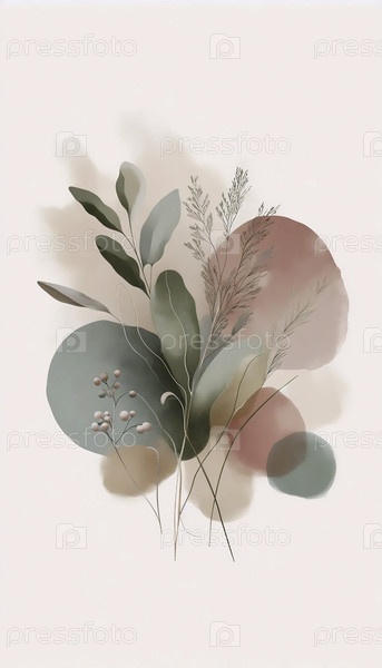 Бохо ботанический настенный принт с абстрактным акварелем, Ai generated image