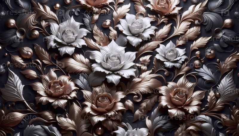 Белое золото розовое золото коричневое золото цветочное 3D-образ, Ai generated image