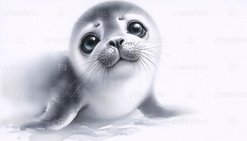 Cute Seal Pup акварельный арт-принт, Ai A generated image