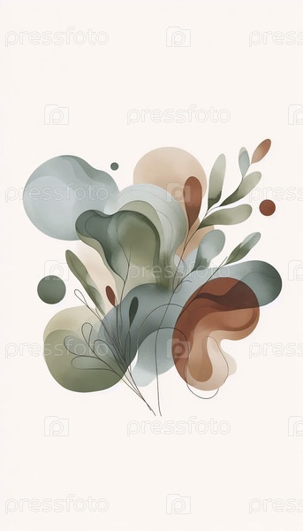 Бохо ботанический настенный принт с абстрактным акварелем, Ai generated image