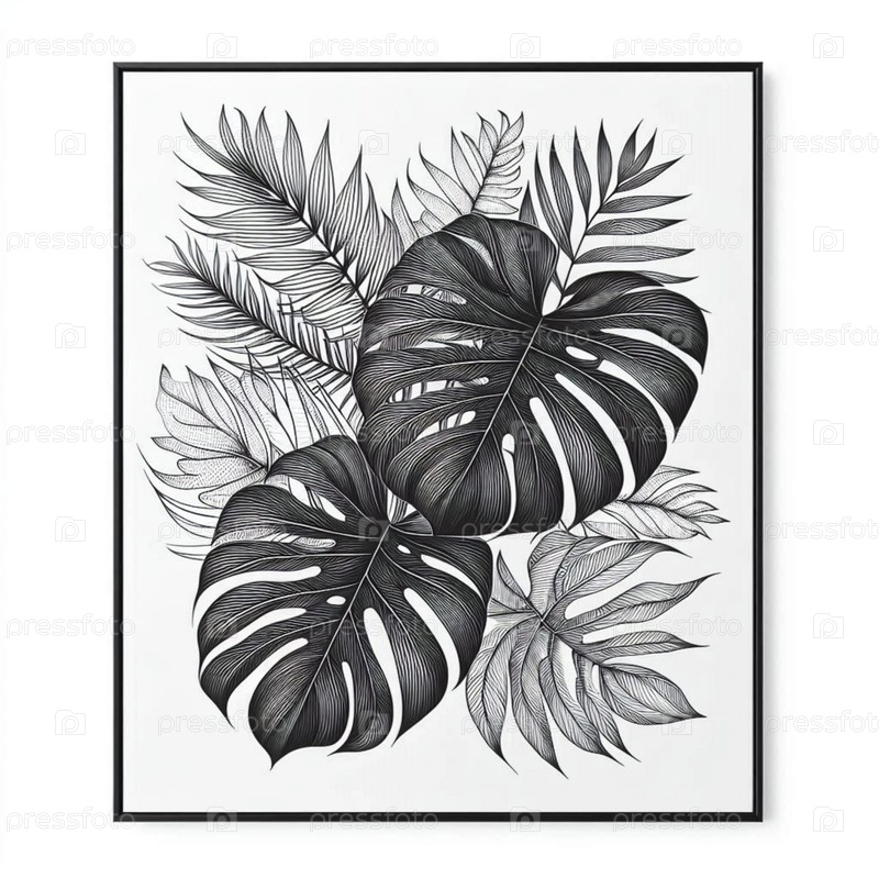 Тропические листья ботаническая линия арт-принт, Ai generated image