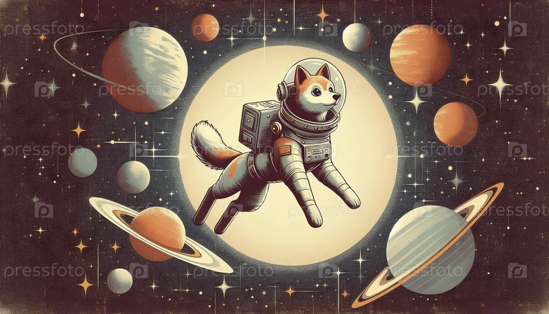 Винтажный стиль Лайки в космическом полотном принте, Ai generated image