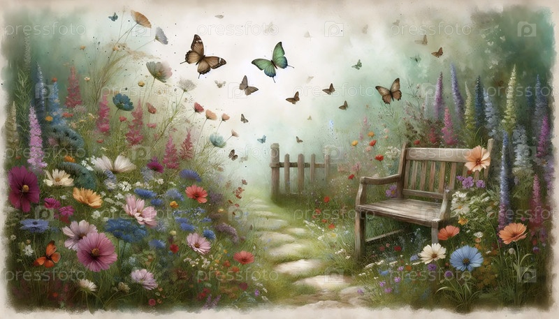 Ботаническое произведение искусства с вязанным узором, Ai generated image