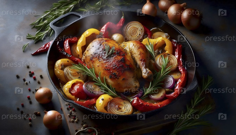 Одна сковородка жареной курицы и овощей, Ai generated image