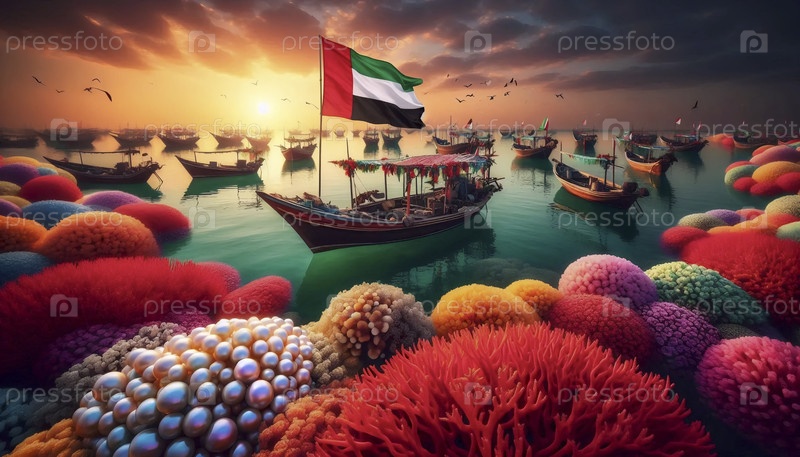 Флаг ОАЭ в наследии жемчужного дайвинга, Ai generated image