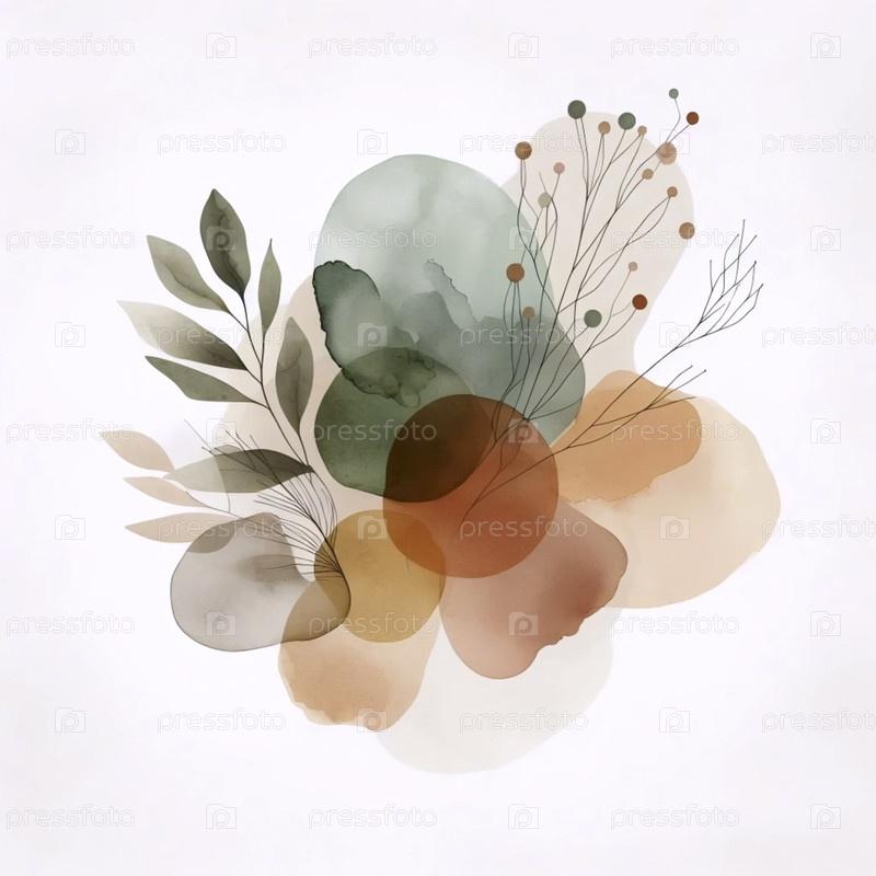 Бохо ботанический настенный принт с абстрактным акварелем, Ai generated image