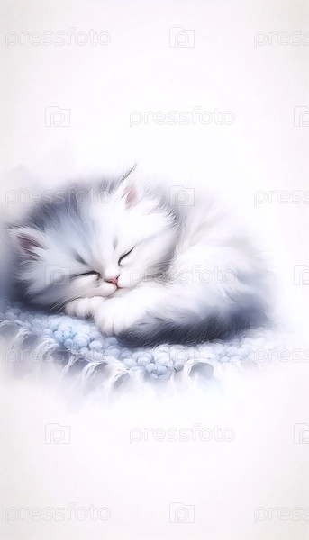 Акварельная живопись спящего пушистого котенка, Ai generated image