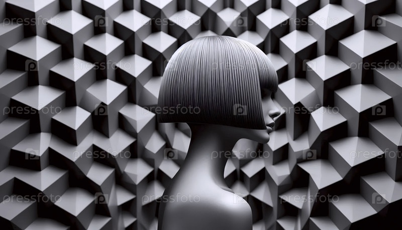 Геометрическая стрижка боба против геометрической стены, Ai generated image