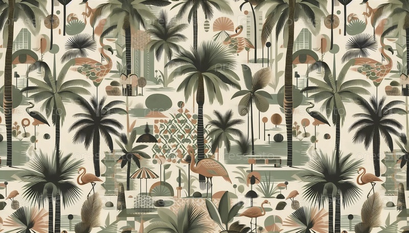 Ретро Palm Toile шаблон бесшовный дизайн, Ai generated image