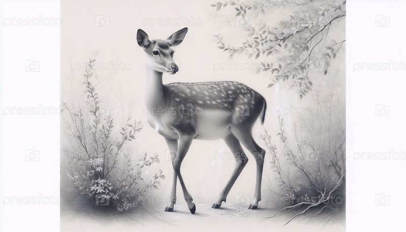 Грациозный олень чернила рисование художественного печати, Ai generated image