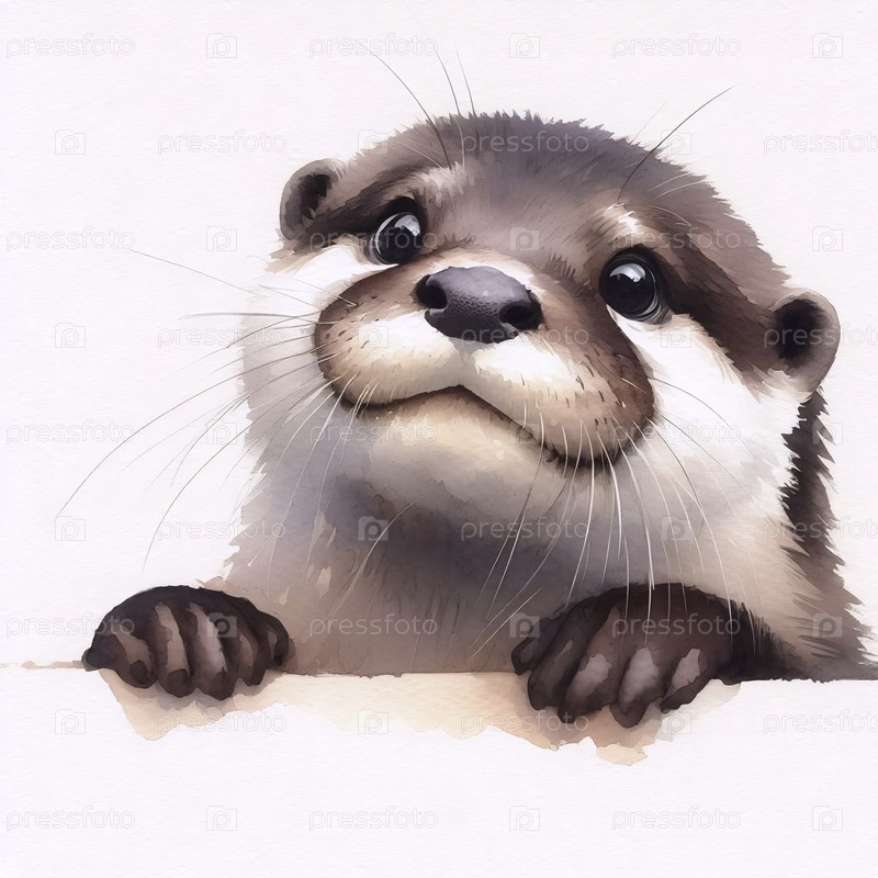 Адекватное акварельное произведение искусства "Оттер", Ai generated image
