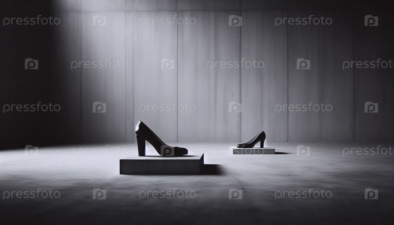 Две туфли одна в вертикальном положении, другая упала, Ai generated image