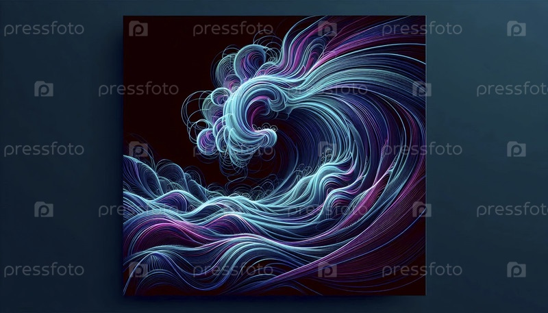 Цифровые неоновые волны художественный плакат, Ai generated image