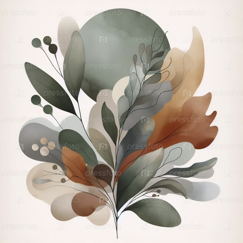 Бохо ботанический настенный принт с абстрактным акварелем, Ai generated image