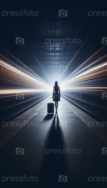 Широкий, минималистский снимок в темном пустом железнодорожном вокзале ночью Ai создал изображение