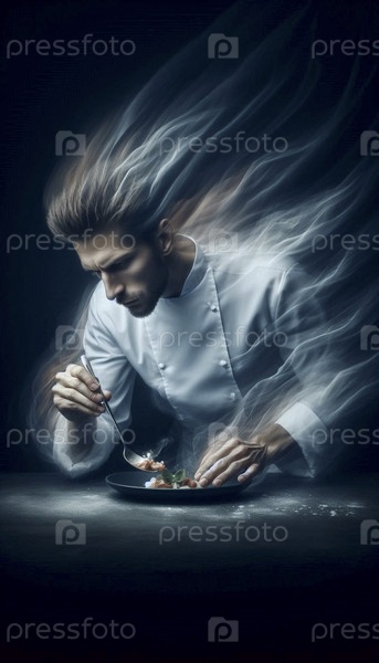 Фотография с длинной экспозицией, на которой запечатлен шеф-повар, подающий блюдо, Ai generated image