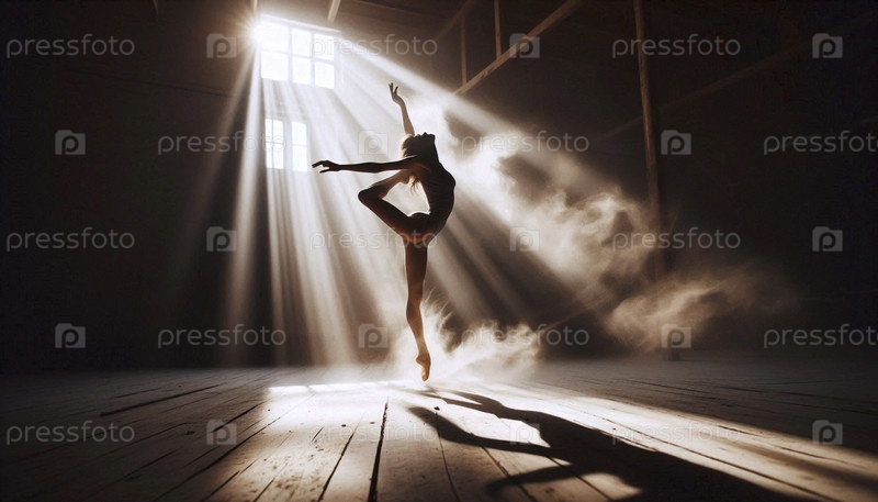 Анонимный танцор в солнечной пыльной студии, захваченная размытым движением, Ай создала изображение