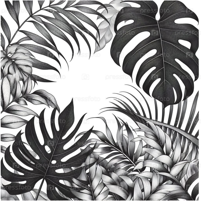 Тропические листья ботаническая линия арт-принт, Ai generated image