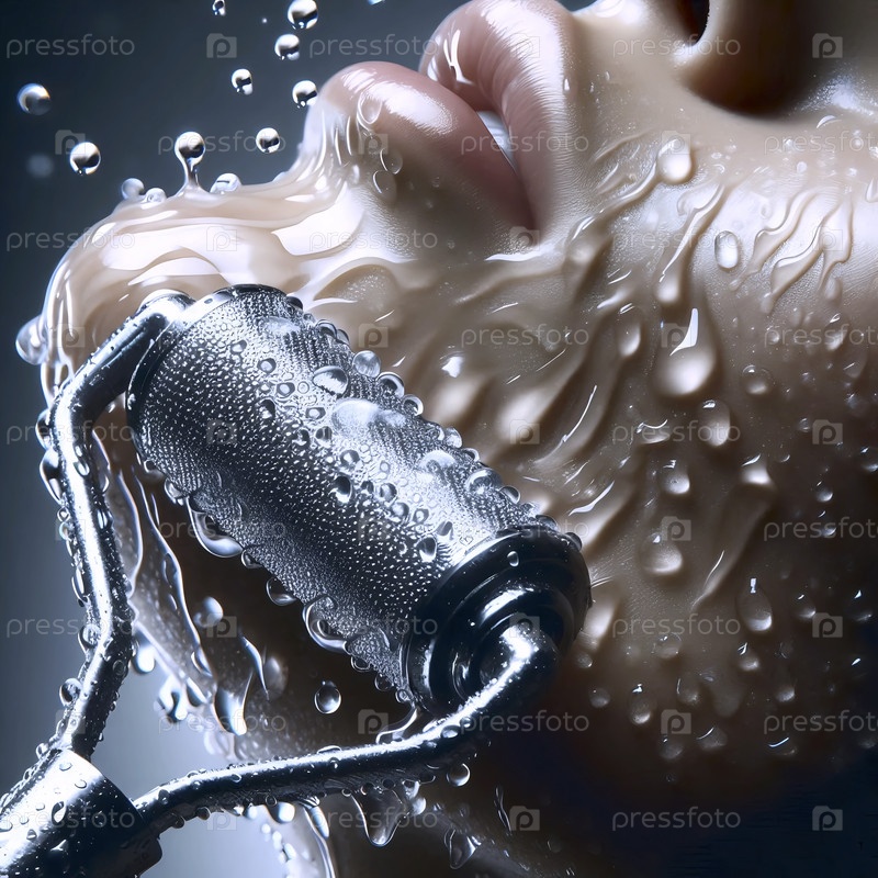 Освежающее ощущение лицевого ледяного ролика, скользящего над кожей с помощью водяных шариков, Ай создал изображение