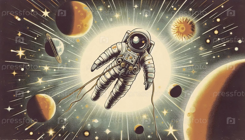 Винтажный стиль Лайки в космическом полотном принте, Ai generated image