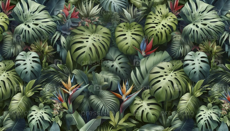 Тропический джунгли бесшовный шаблон, Ai generated image A