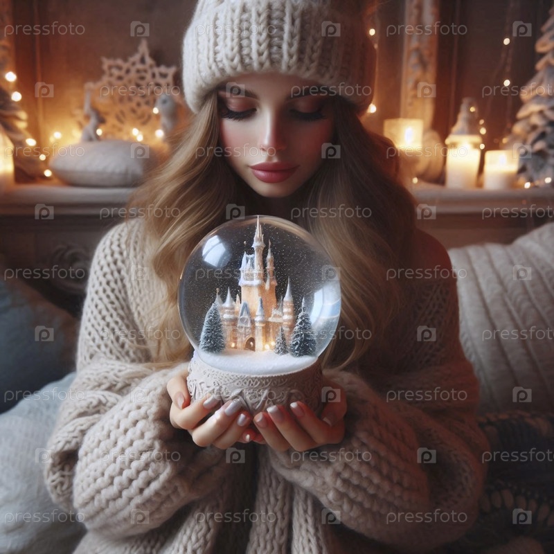 Принцесса со снежным шаром Королевство акварельное художественное печать, Ai generated image