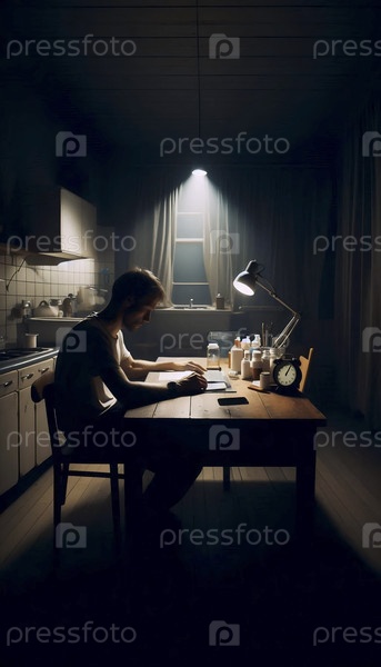 Для более широкого снимка, показывающего всю сцену одинокой кухни, Ай создал изображение