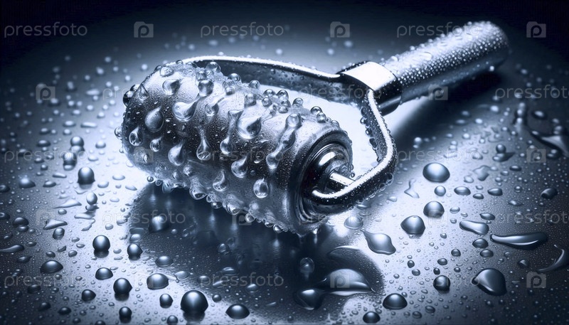 Освежающее ощущение лицевого ледяного ролика, скользящего над кожей с помощью водяных шариков, Ай создал изображение