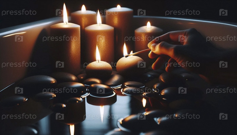 Спокойный вечерний ритуал зажигания свечей для цифровой детоксикационной ванны, Ai generated image