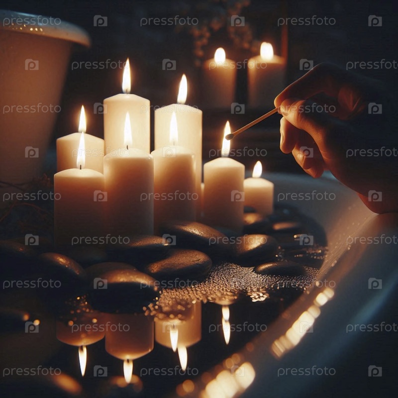 Спокойный вечерний ритуал зажигания свечей для цифровой детоксикационной ванны, Ai generated image