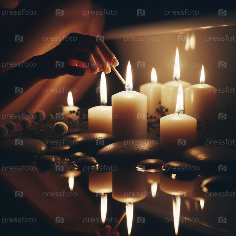 Спокойный вечерний ритуал зажигания свечей для цифровой детоксикационной ванны, Ai generated image