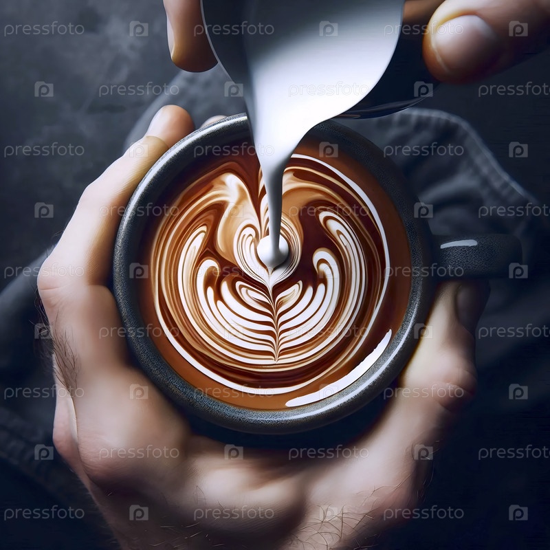 Мастер-класс бариста: точный момент создания латте в оживленном городском кафе, Ai generated image