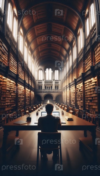Офис фрилансеров днем в яркой солнечной публичной библиотеке Ai generated image